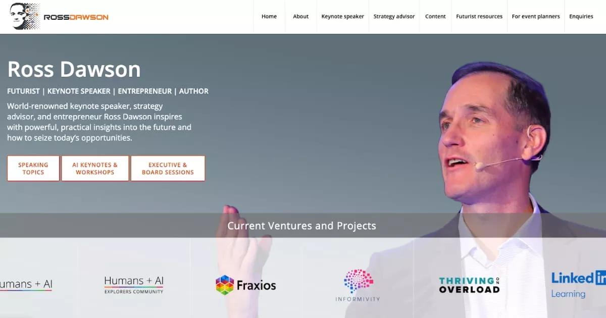 - Ross Dawson: Tech-led content suited to digital delivery